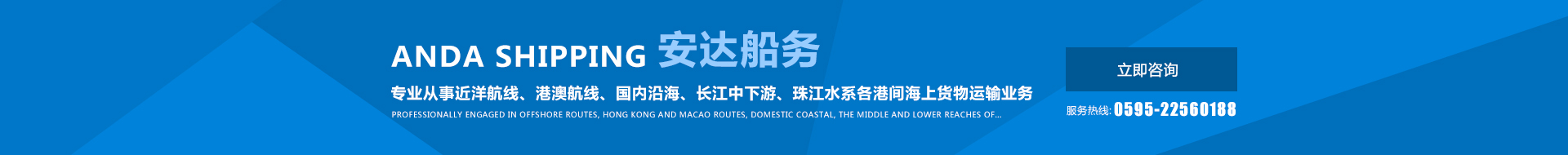 福建安達(dá)船務(wù)有限公司(FUJIAN ANDA SHIPPING CO.,LTD)成立于一九九二年,企業(yè)類型為有限責(zé)任公司,法定代表人:陳其泗,注冊(cè)資本人民幣貳仟萬(wàn)元,統(tǒng)一社會(huì)信用代碼:91350521156221168Y,水路運(yùn)輸許可證:交閩XK0184。公司現(xiàn)有CCS入級(jí)散貨輪4艘,總運(yùn)力8.2萬(wàn)噸,船舶技術(shù)狀況良好。公司管理制度完善,組織機(jī)構(gòu)健全,擁有一個(gè)專業(yè)、穩(wěn)定的管理團(tuán)隊(duì)。公司按照 NSM規(guī)則建立了安全管理體系,在船岸保持有效運(yùn)行,并通過(guò)海事局審核取得了NSM規(guī)則的符合證明。